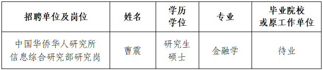 中國華僑華人研究所學(xué)術(shù)交流研究部研究崗因人選放棄考察資格,取消招聘計(jì)劃;理論政策研究部研究崗因人選不符合招聘要求,取消招聘計(jì)劃。