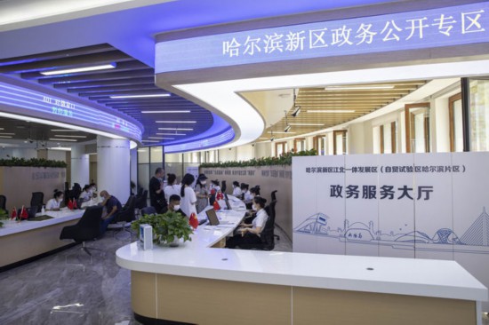 2022年7月12日,市民在黑龍江省哈爾濱新區江北一體發展區(自貿試驗區哈爾濱片區)政務服務大廳辦理業務。新華社記者 張濤 攝