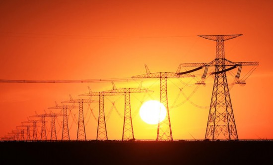 這是在新疆木壘哈薩克自治縣大石頭鄉附近拍攝的昌吉—古泉±1100千伏特高壓直流輸電線路(2025年7月5日攝)。
