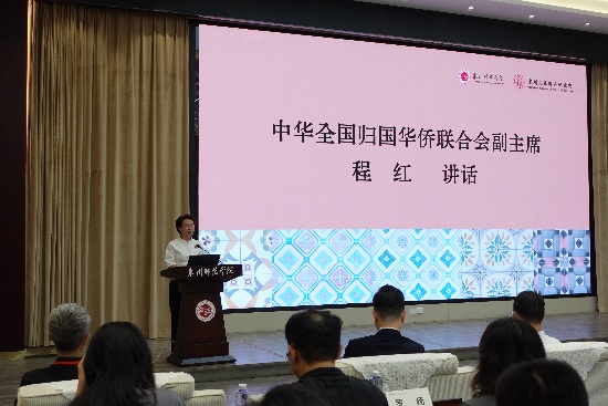 中國僑聯副主席程紅,福建省僑聯黨組書記、主席陳式海,泉州師范學院黨委書記柯瑞清,福建省文旅廳黨組成員、副廳長、省文物局局長傅柒生,泉州市委常委、宣傳部部長、統戰部部長劉林霜,中國華僑歷史博物館副館長(主持工作)寧一出席會議。來自廣東、福建、北京、浙江、山東、黑龍江的華僑博物館專委會會員單位代表,以及來自北京、福建、廣東等文博機構、高校、科研院所的專家學者110余人參加此次盛會,共同探討華僑文化遺產傳承保護的前沿理念和實踐創新。研討會開幕式由福建省僑聯主席陳式海主持,主旨發言環節由中國華僑歷史博物館副館長雷霆主持。